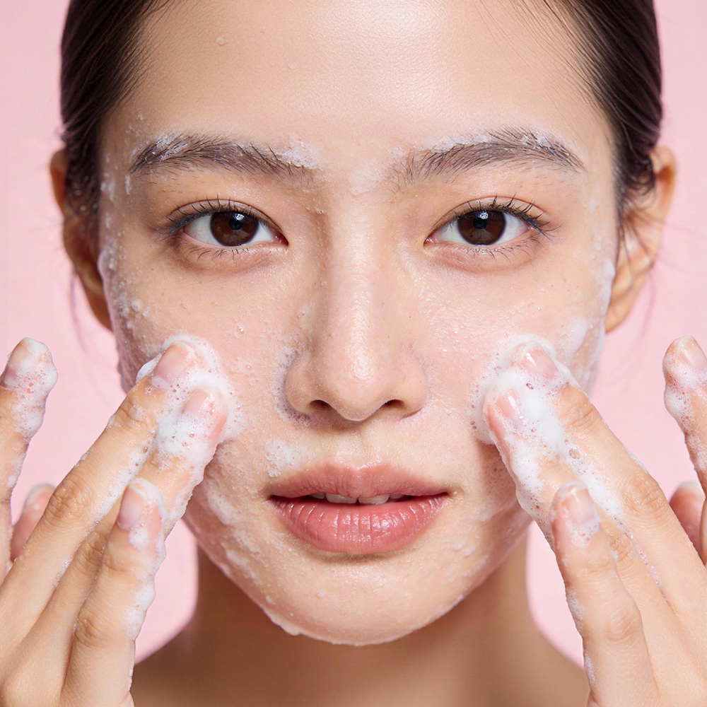 Take an appropriate amount of facial cleanser and apply it evenly to your face. Gently massage in circular motions for about 1 minutes, then rinse with warm water.